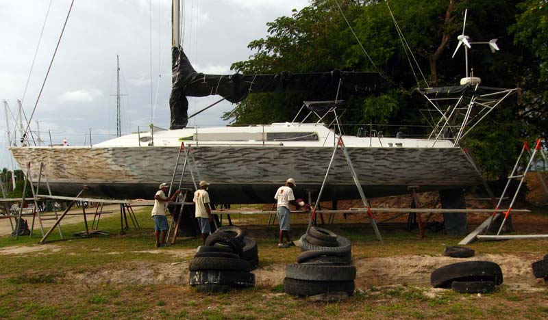 As you will see in part three of the story, at the end I created a special graphic combining elements of Baobab’s logo and the signatures of every guy on the crew and put it on the transom of ‘Learjet’. I was, and still am, proud of the work they did. And that graphic is a testament to that fact.