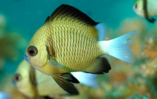 This is actually quite a small little fish, about 25mm high. He is called a Reticulate Dascalas. This particular one was being so cooperative I managed to get a very close shot.
