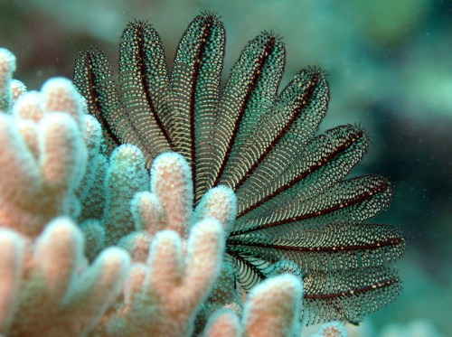 The following photo is from my 3rd day of diving at Yadua. You have seen these creatures in some of my earlier posts. But this black crinoid specimen is in a rather unusual pose, and hence the posting.
