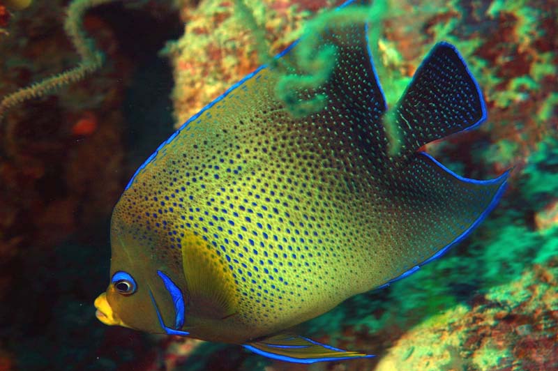 I’ll close with a shot of one of my most favorite angelfish, the Semicircle Angelfish. These guys are really gorgeous. To get a shot of one of these requires a lot of persistence. They tend to hide in holes and crevices and are quite camera shy.