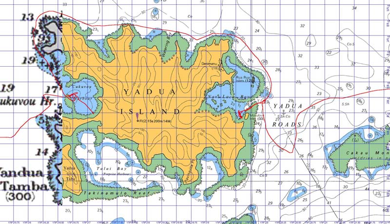 This story goes back to June 2007 when Pamela and I were on board ‘Learjet’ at the island of Yandua. We were taking ‘Learjet’ from Savusavu on the island of Vanue Levu, to the main island of Fiji, Viti Levu. The wee island of Yadua is on the way.