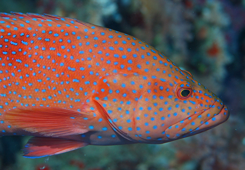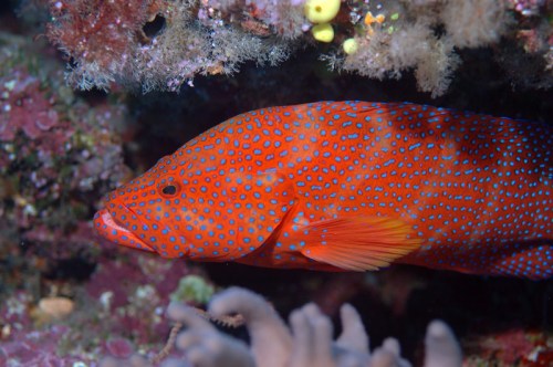I’ve read that Coral groupers are a fairly territorial species, with harems defending areas of reef of around 400 square metres. Each harem consists of one dominant male and 2-12 females. Within the harem’s area, territory may be sub-divided and defended by individual females from the harem. I’ve never seen that behavior. I’ve always see solitary individuals. Coral trout are protogynous hermaphrodites. That is, they start their lives as females and change sex to become males later in life.